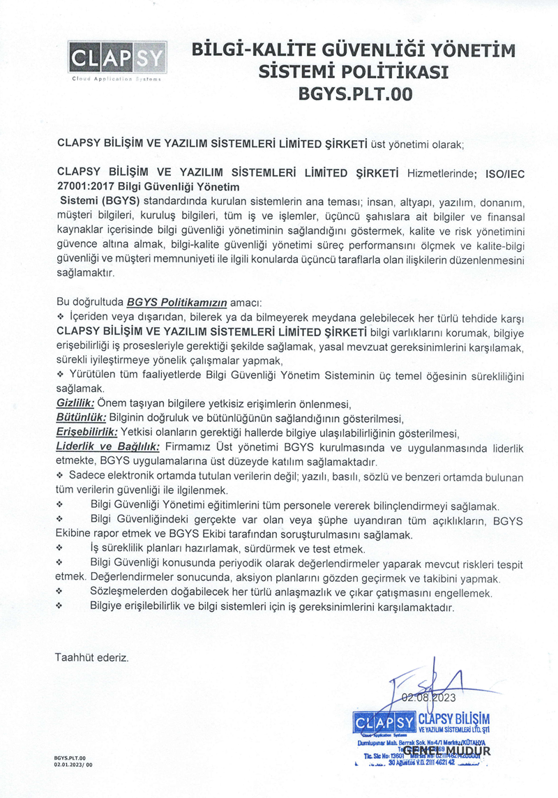 CLAPSY BİLİŞİM VE YAZILIM SİSTEMLERİ LTD. ŞTİ.